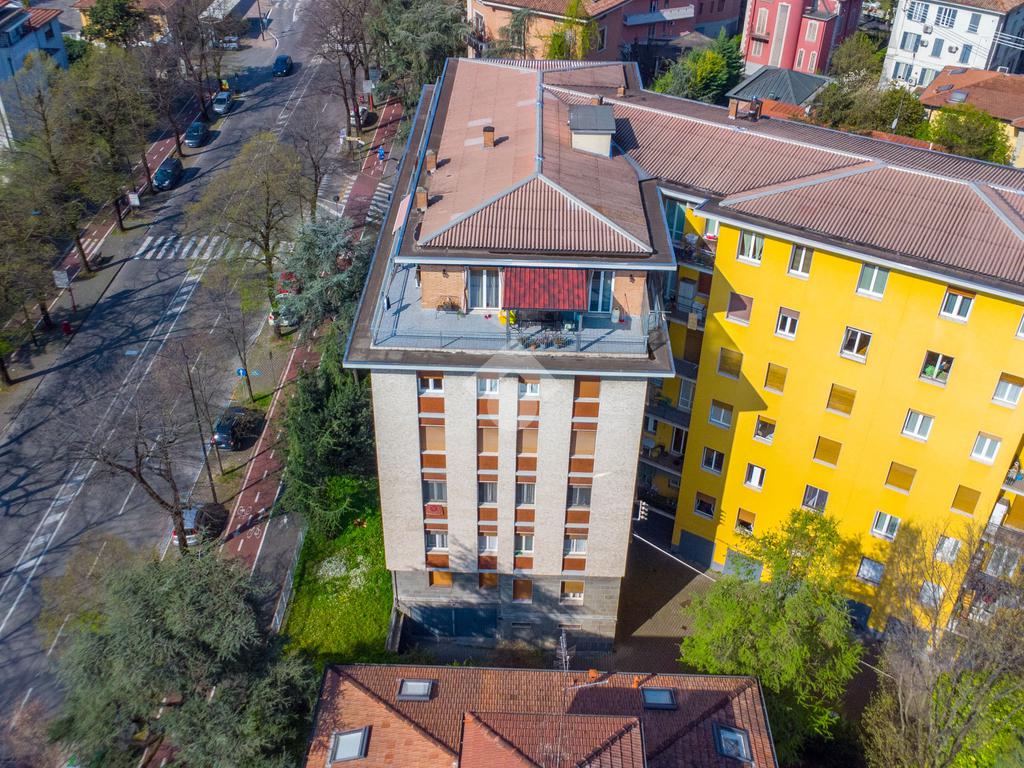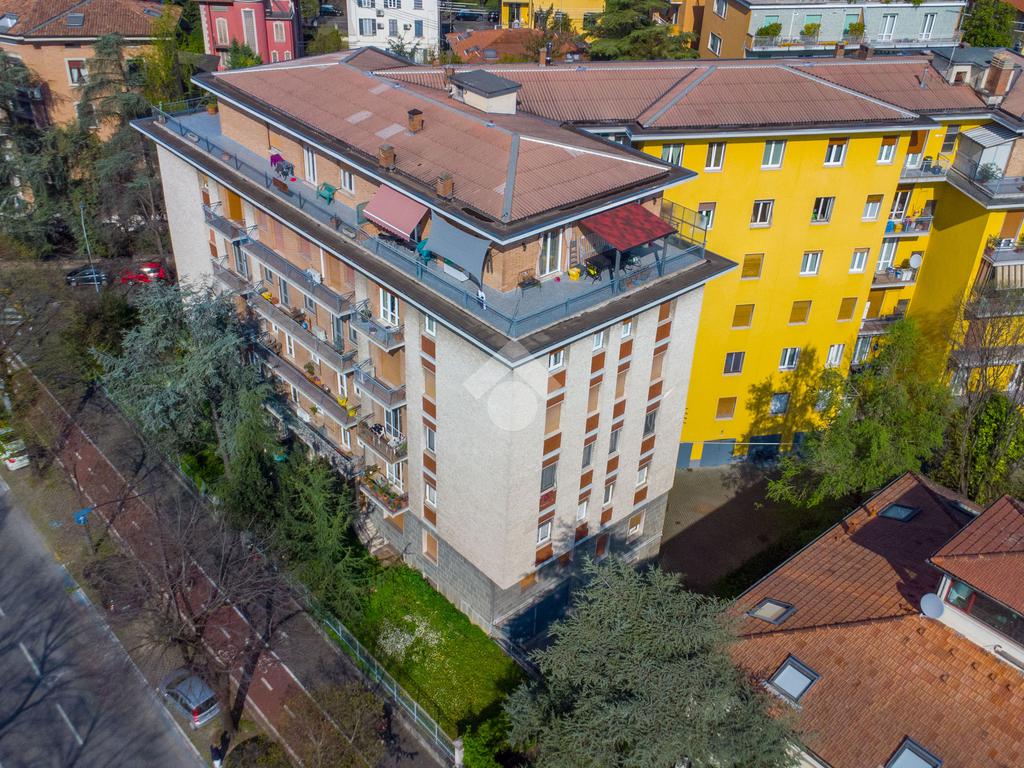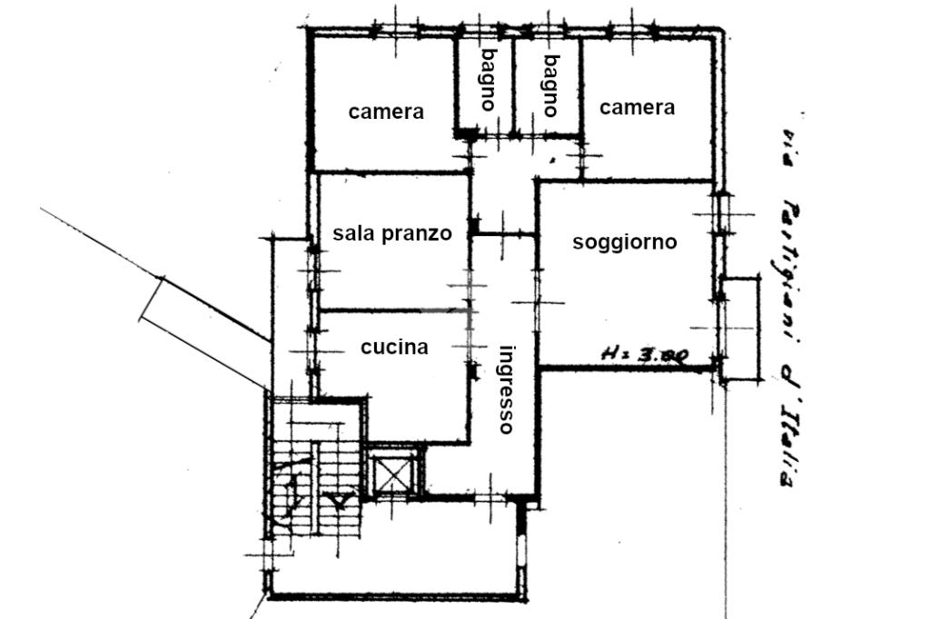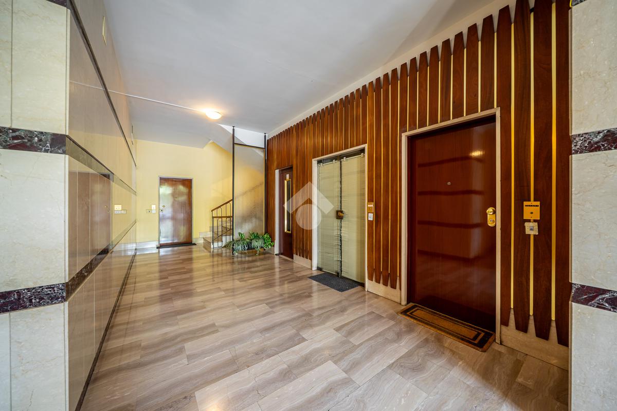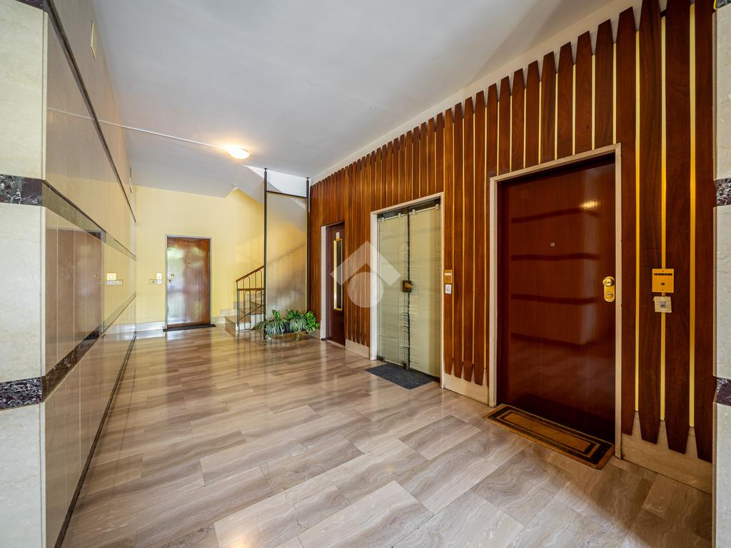 La casa, posta al primo piano con ascensore in condominio signorile, gode di vista aperta su tutti e tre i lati.