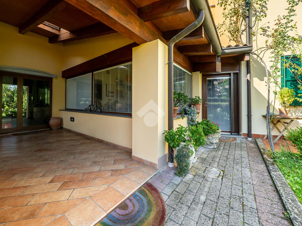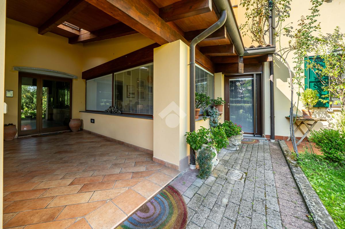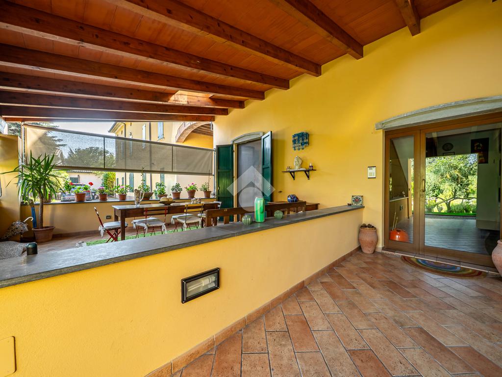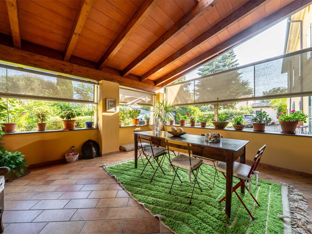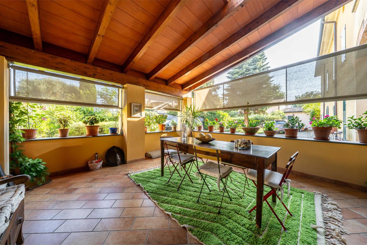 Varcando la soglia si viene accolti da un soggiorno ampio e luminoso, impreziosito da un camino che dona carattere all’ambiente e da grandi aperture verso il giardino privato, un prolungamento naturale della zona giorno. La cucina abitabile, collegata al portico, è pensata per essere vissuta pienamente: durante la bella stagione lo spazio esterno diventa infatti una vera estensione della casa, ideale per pranzi e cene all’aperto.