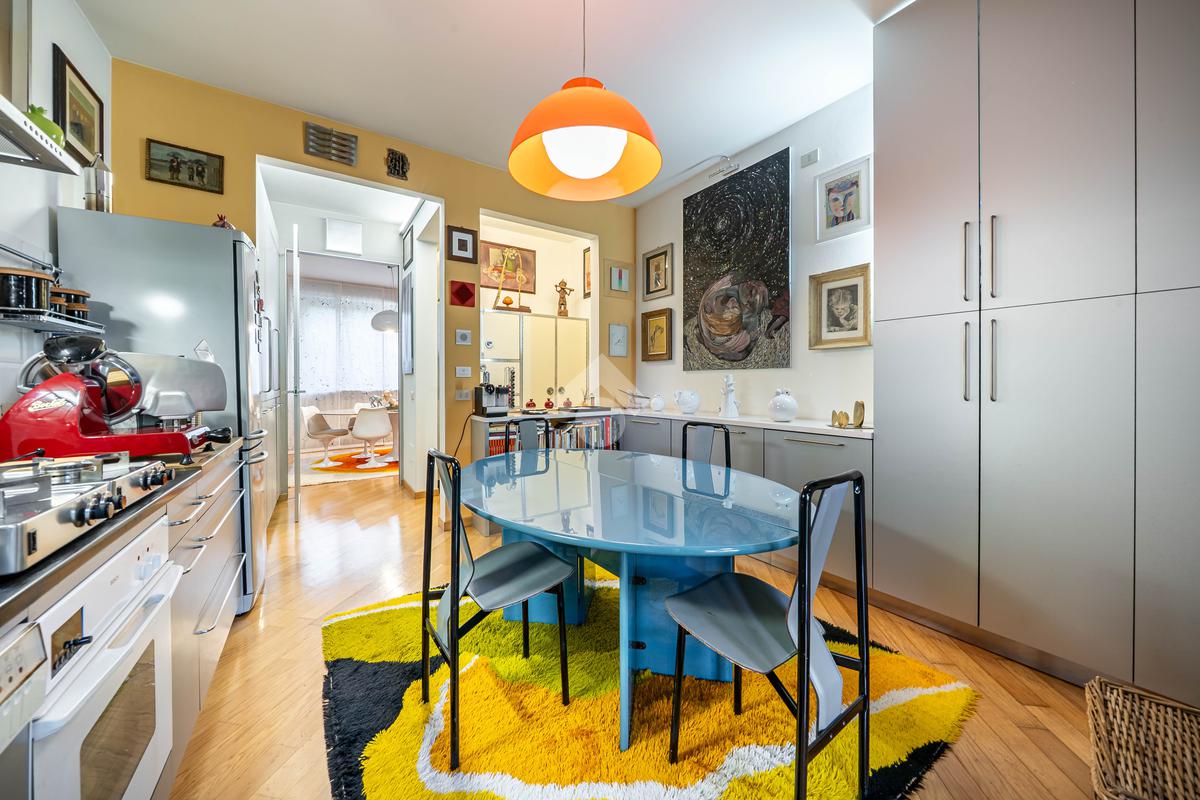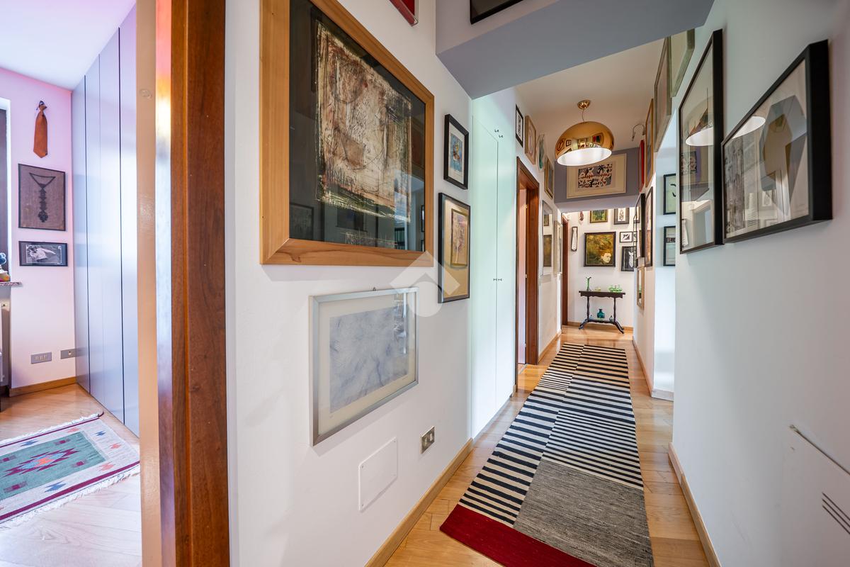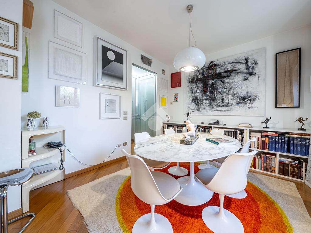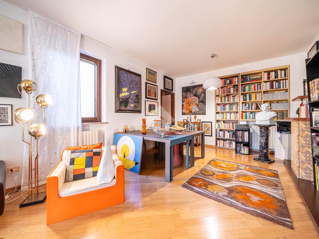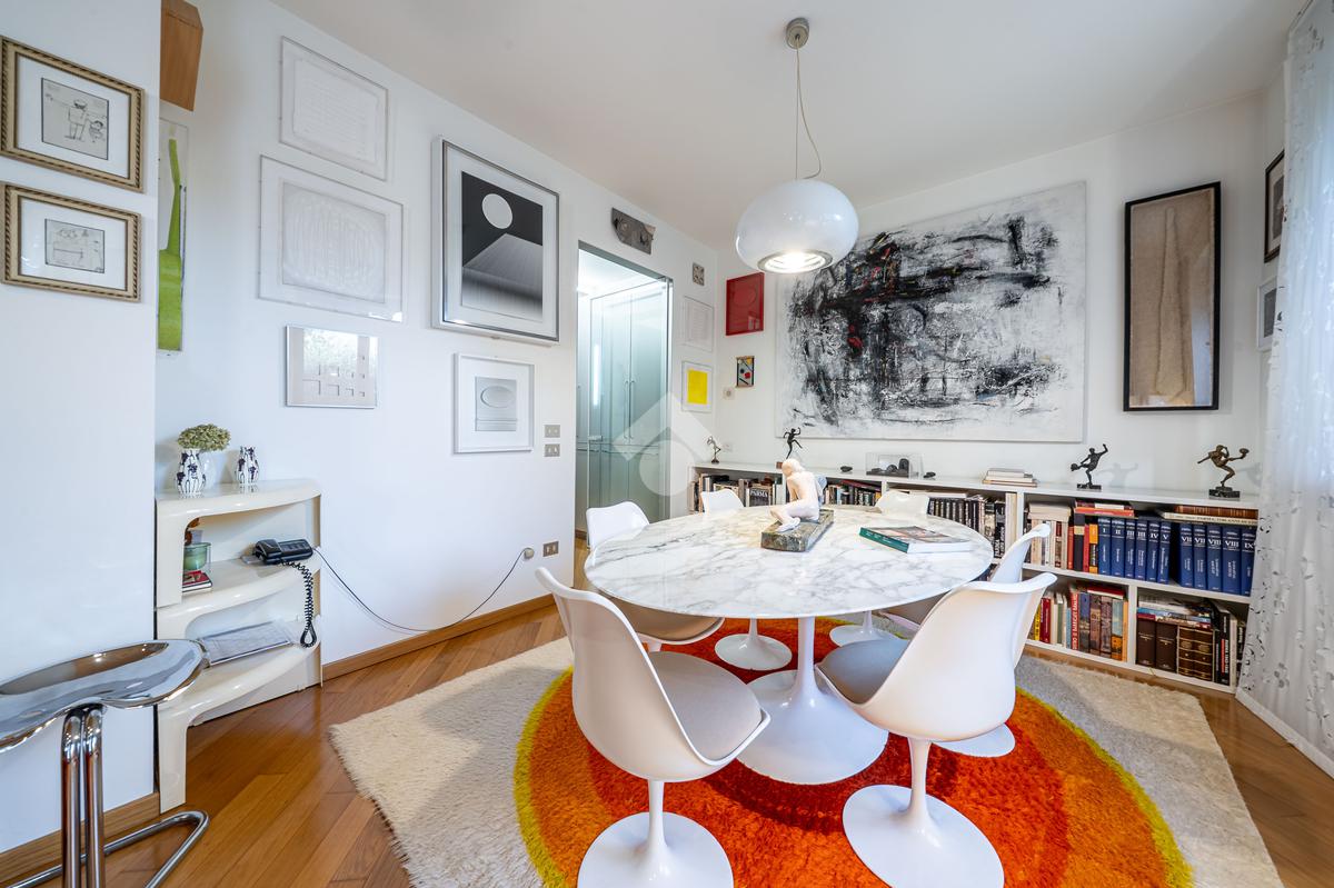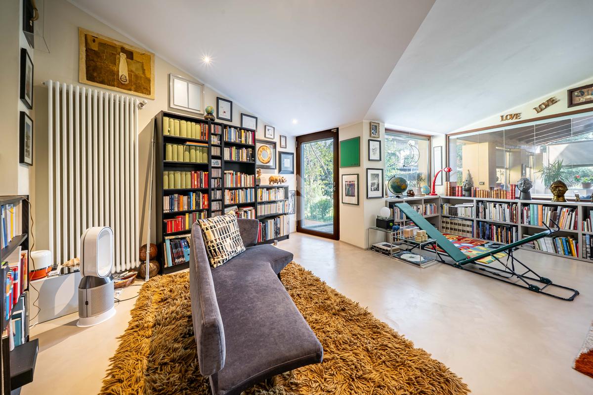 A dare ulteriore respiro all’appartamento, uno studio elegante e luminoso, caratterizzato da vetrate oscurabili e affaccio sul secondo giardino privato: un ambiente che può diventare il luogo ideale per lavorare da casa o per ritagliarsi momenti di quiete. È presente anche una pratica lavanderia.