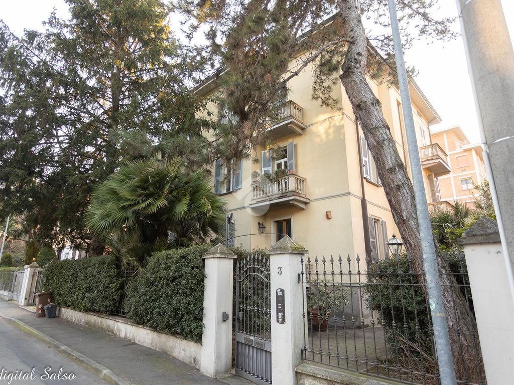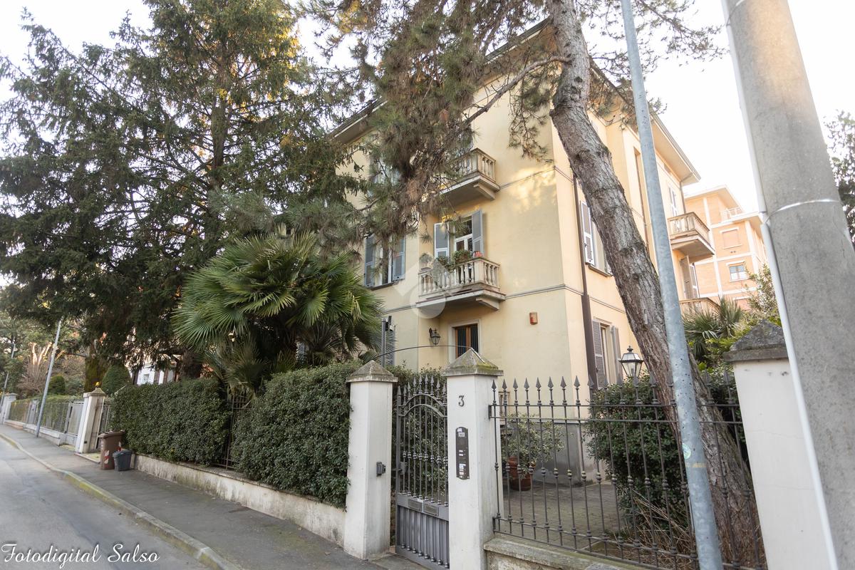 In una via silenziosa e tra ville di prestigio sorge questa splendida costruzione Liberty degli anni '30 in un perfetto stato di manutenzione, circondata da un bellissimo giardino che protegge la privacy.