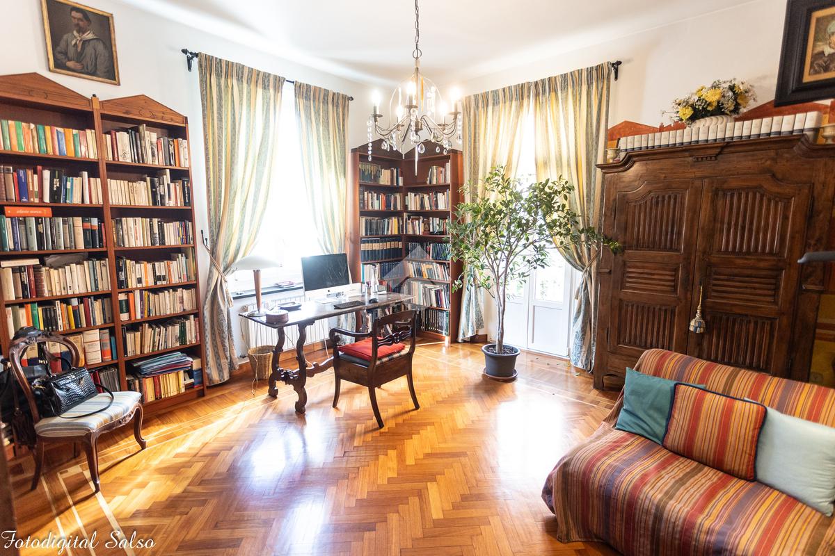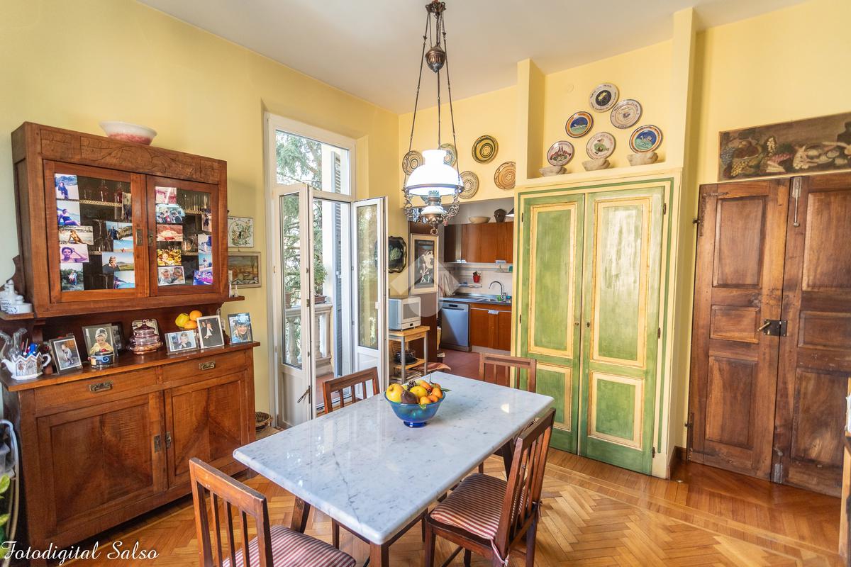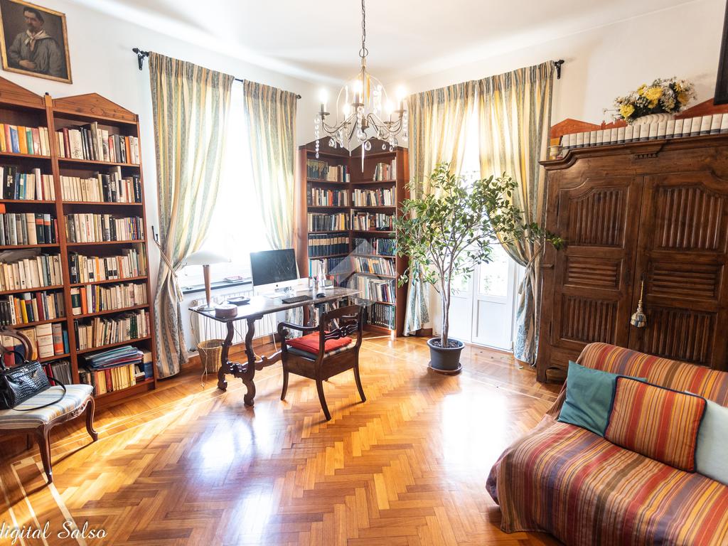 Cucina con grande tinello e balcone, sala libreria con balcone, sala pranzo e bagno completano il piano. Il nuovo proprietario può scegliere se trasformare una o due stanze del primo piano in camere da letto matrimoniali così da ricavare un totale di 4 camere.