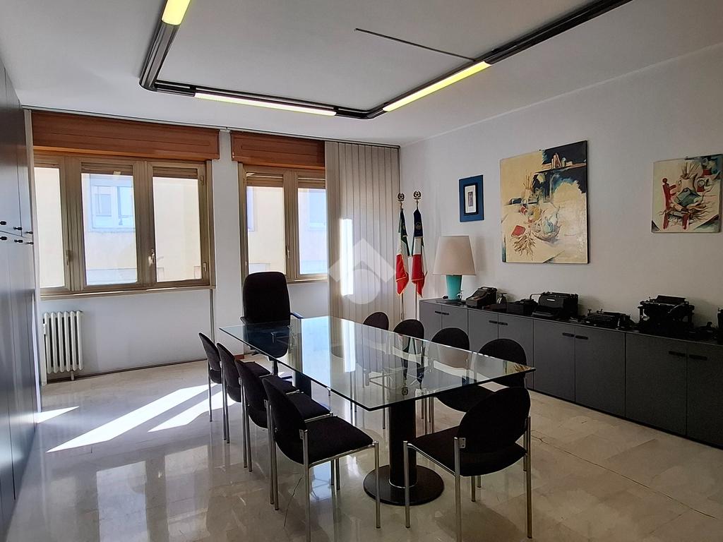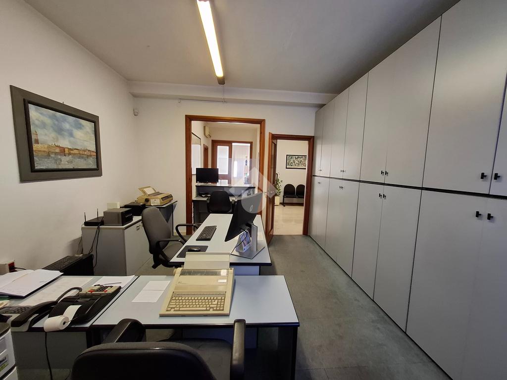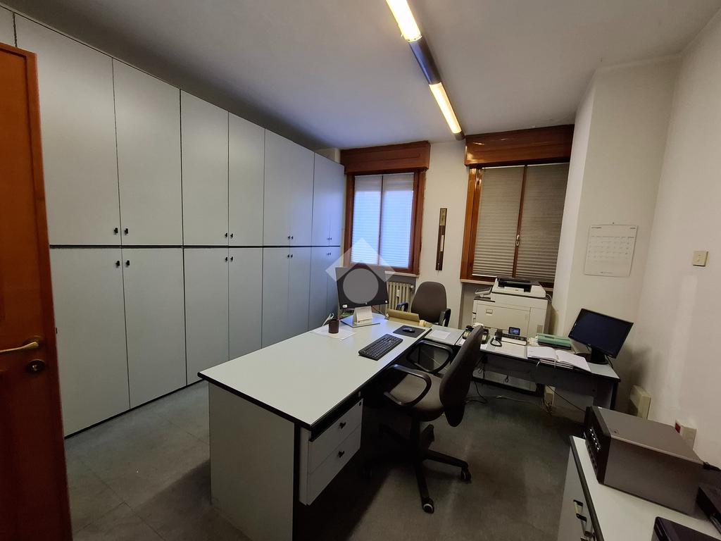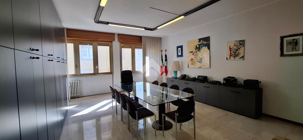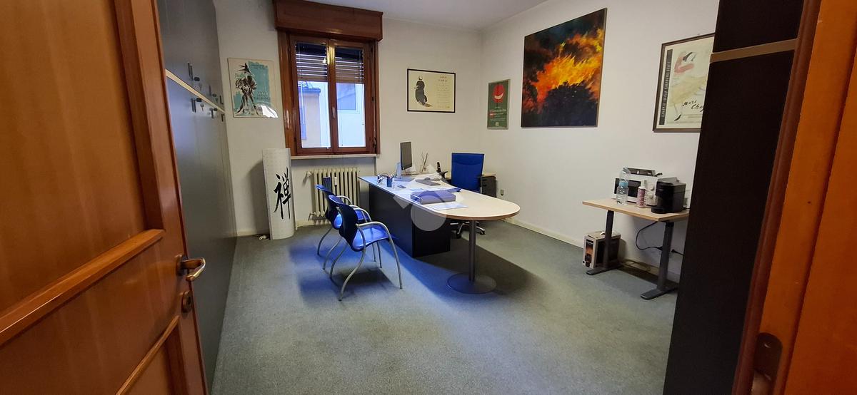 Attualmente utilizzato come studio notarile, l’appartamento mantiene la sua destinazione d’uso abitativa e si presta perfettamente a una riorganizzazione degli spazi interni. La planimetria consente di ricavare una comoda cucina abitabile, un ampio soggiorno, due camere da letto (una delle quali con loggia e vista sulla Steccata) e due bagni.
