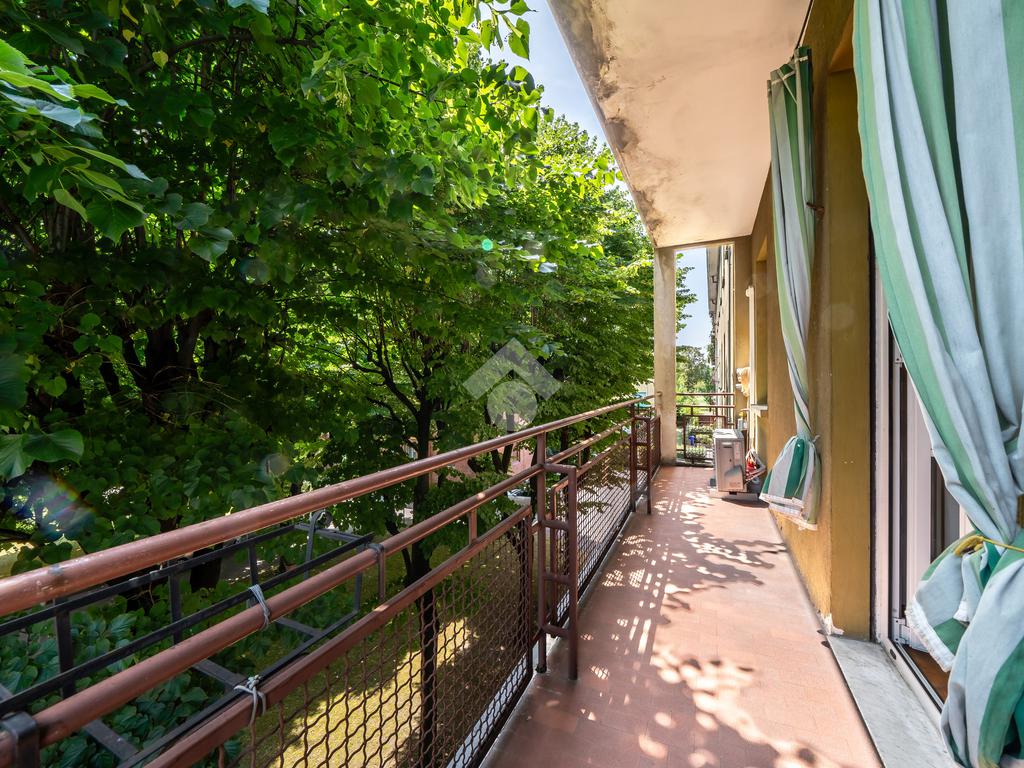 L'immobile si apre su un ingresso comodo che conduce a un soggiorno luminoso con accesso al balcone, affacciato sul verde del cortile alberato del palazzo. La cucina è abitabile e separata, perfetta per chi ama cucinare e cerca spazi funzionali. La zona notte è composta da due camere matrimoniali di generose dimensioni e da un bagno finestrato.