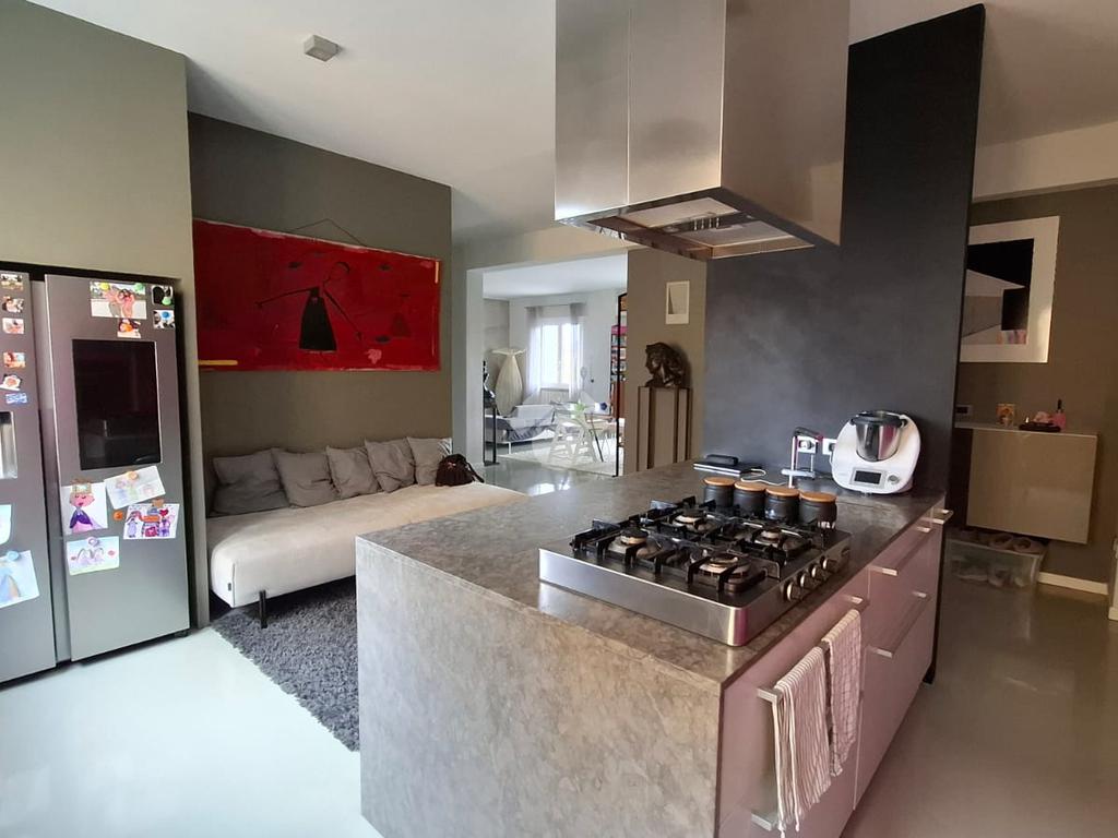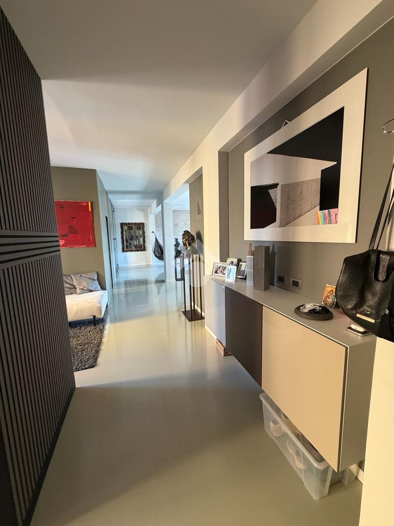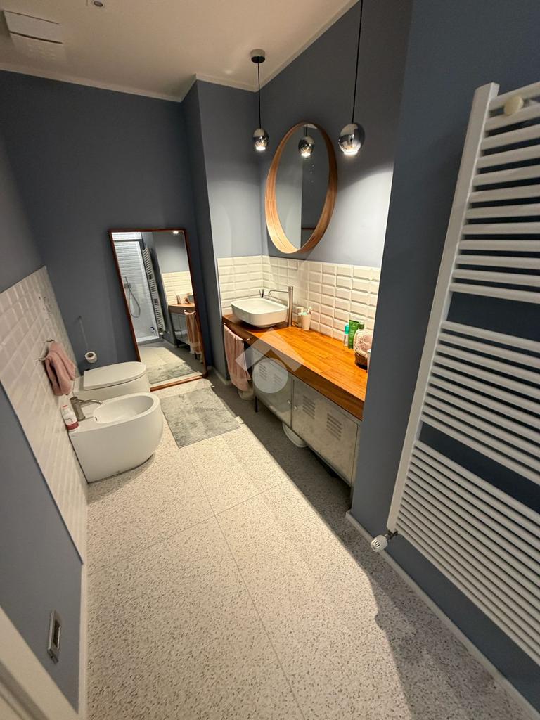 La ristrutturazione ha interessato in modo completo gli impianti elettrico e idrico-sanitario, accompagnata da interventi mirati al miglioramento dell’isolamento termico e acustico. Le finiture alternano pavimenti in resina a parquet in legno posato a lisca italiana, mentre i serramenti in alluminio ad alta efficienza e le tapparelle motorizzate con gestione da remoto contribuiscono al comfort quotidiano.