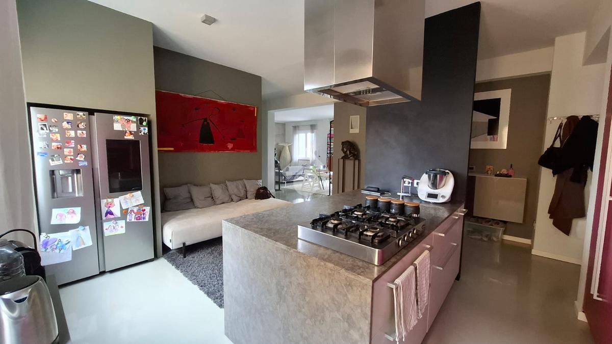 L’ingresso introduce a una zona giorno ampia e continua di circa 70 mq, che si articola in cucina a vista con isola, area pranzo e living. L’ambiente si apre su un balcone esposto a sud, che garantisce luce naturale durante l’intero arco della giornata. La distribuzione interna prosegue con tre camere matrimoniali di dimensioni regolari, una delle quali arricchita da cabina armadi ed un’altra dotata di balcone privato. Completano la casa due bagni, entrambi spaziosi, ed un locale lavanderia separato.